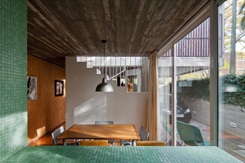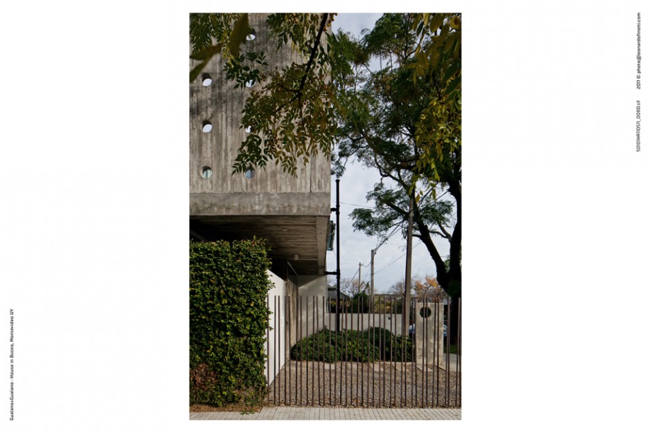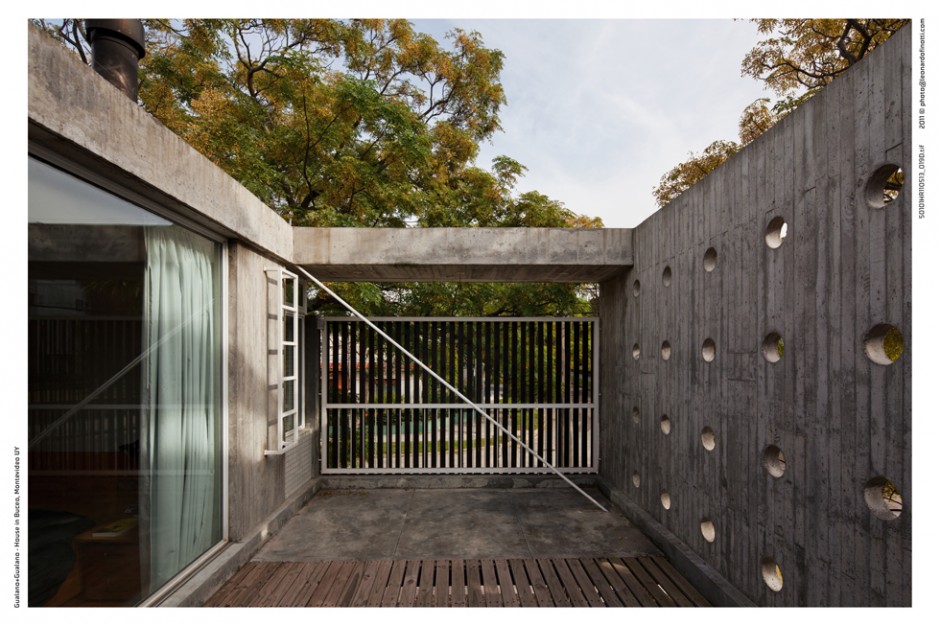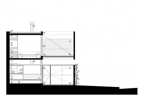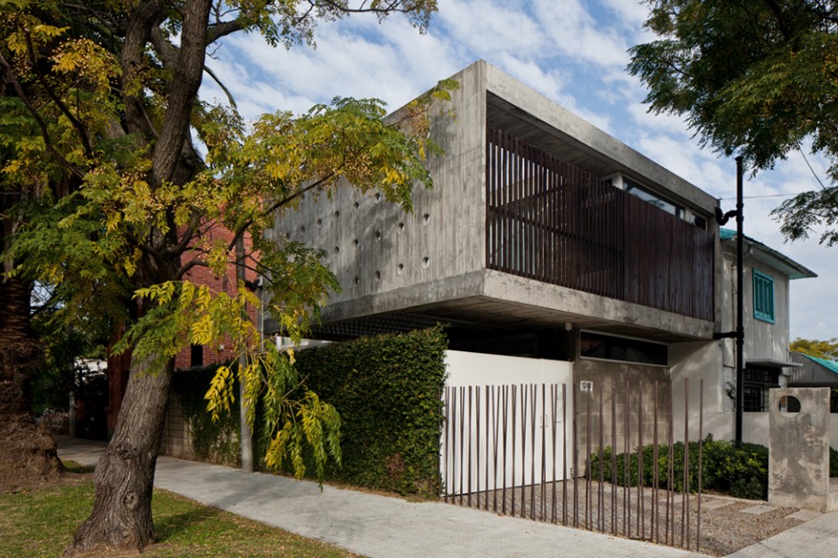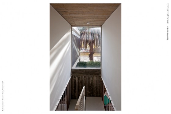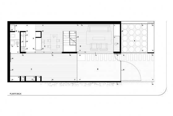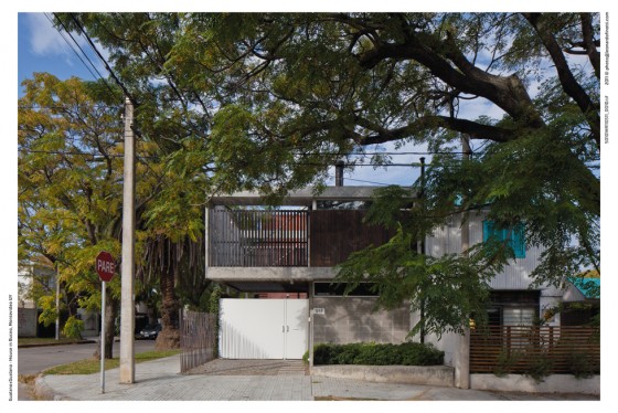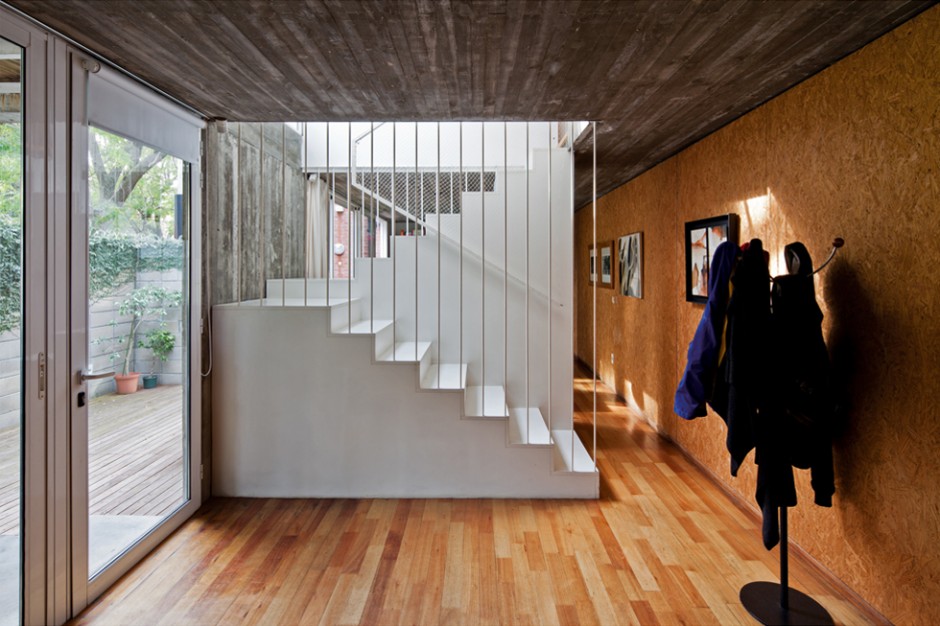 La vivienda se implanta en un terreno, de 7.50 x 17.50 metros, con la fachada más larga hacia el norte. El proyecto se estructura en base a dos bandas bien diferenciadas, una patio, la otra vivienda, una blanda y ausente y otra dura y presente. Esto genera una vivienda que se abre al patio y al norte, ya que el patio se coloca por delante, dejando que la casa absorba todo el sol y generando privacidad a partir de un muro elevado que define el patio al frente.