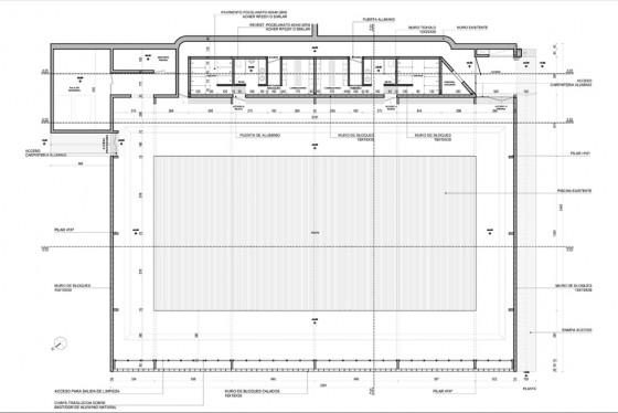 Realización de vestuarios y cerramiento global de piscina existente Plaza Deportes Rivera