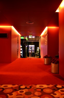 El viejo patio interior, antes ocupado por cocina y dependencias de servicio, se libera, ingresando la  obra nueva de las áreas destinadas a la sala de slots, y oficinas y servicios propios del Casino.