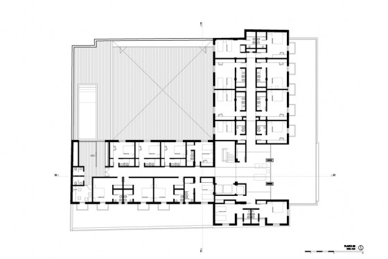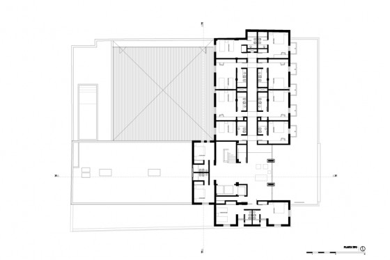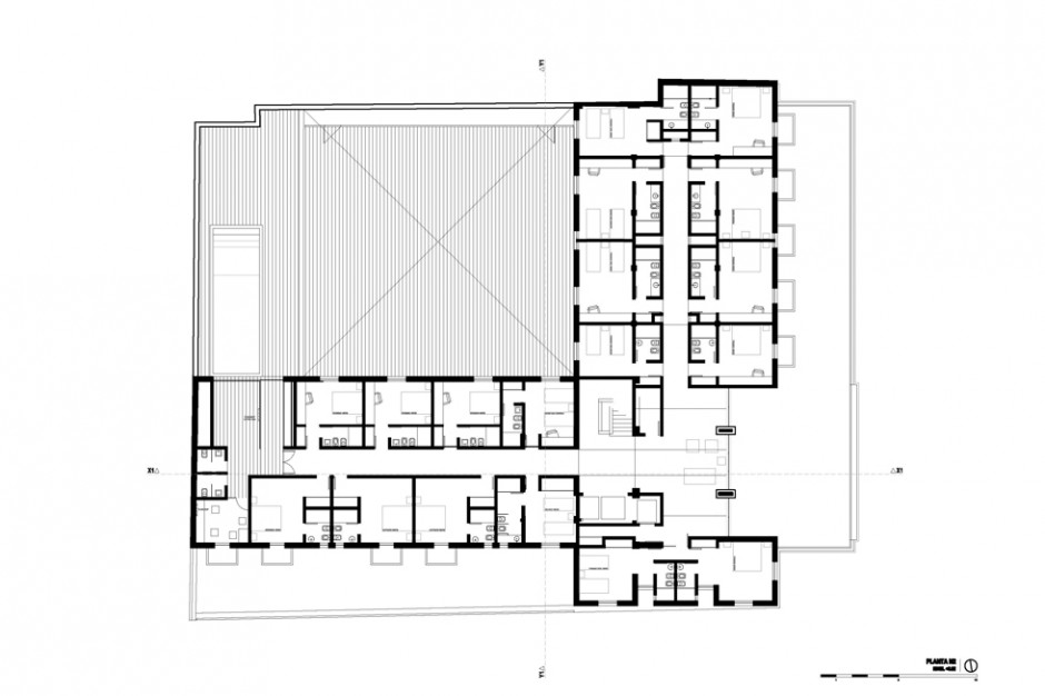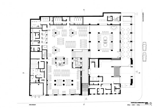 El hotel que ocupaba el padrón en forma de L, mantiene su carácter original, recuperando su impronta. Proponemos la creación de un nuevo piso de habitaciones, generando un nuevo remate al edificio.