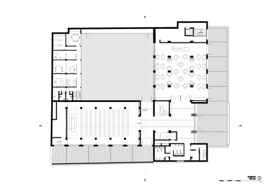 Proponemos la recuperación de los amplios espacios del viejo Gran Hotel Salto, disponiendo la Sala de Conferencias en el ala norte, sobre la calle Uruguay, y la rejerarquización de los espacios  destinados a Cafetería y Desayunador en la Planta Baja y Primer Nivel,  hacia la Plaza Gral. Artigas.
