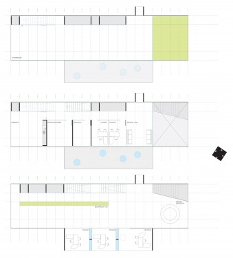 A nivel programático, el edificio plantea que los 3 sectores sean cada uno, un piso entero.