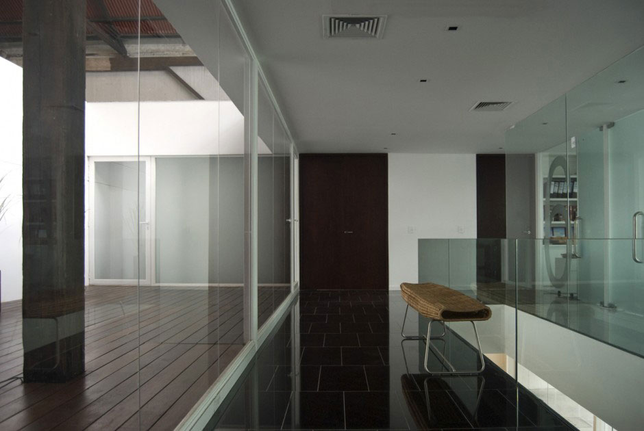 Las estructuras de madera que soportan al techo se recuperan y algunas atraviesan la nueva pieza quedando visibles.