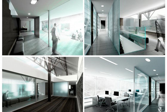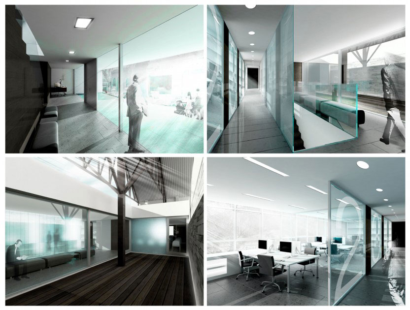 Encargo para realizar las nuevas oficinas, en un terreno con un galpón industrial existente, enclavado dentro de la trama urbana del centro de Montevideo, en una zona cercana al puerto.