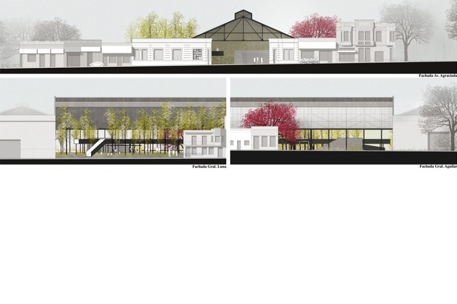 Se propone que las construcciones existentes sobre Agraciada tomen la altura original de un nivel, volviendo a tomar  protagonismo el techo y su estructura metálica.