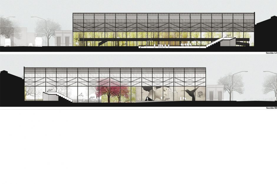 Se opera vaciando el padrón de construcciones existentes, dejando exclusivamente techada y pavimentada la nave central de la vieja compañía Transatlántica, poniendo en valor el carácter patrimonial de su notable estructura metálica.