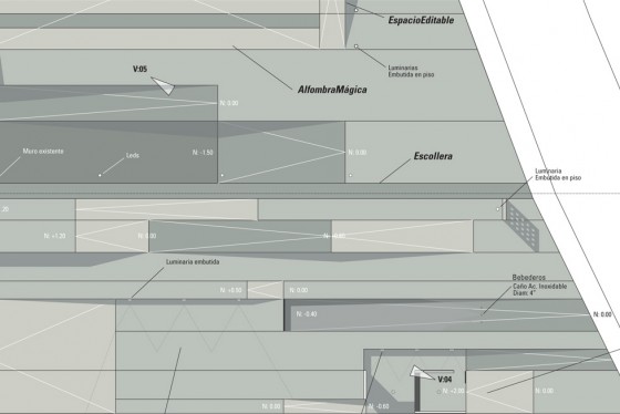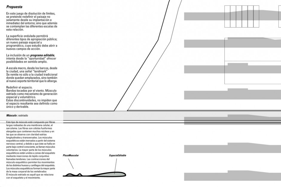 La superficie ondulada permitirá diferentes tipos de apropiación pública; un nuevo paisaje espacial y programático, cuyo estudio debe abrir a nuevos campos de acción.