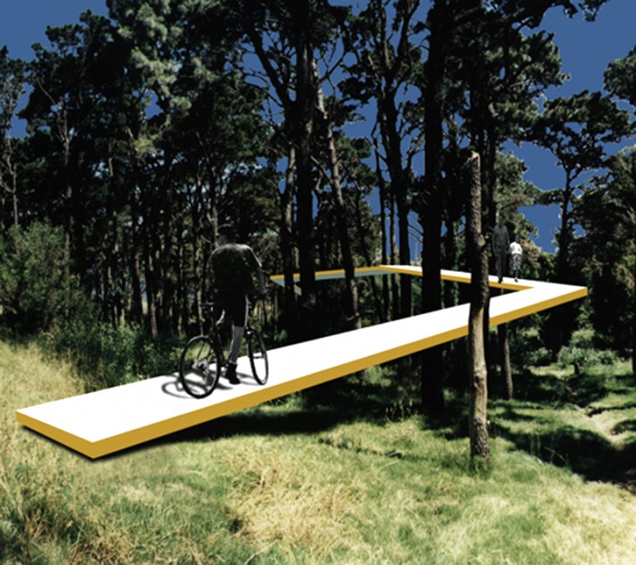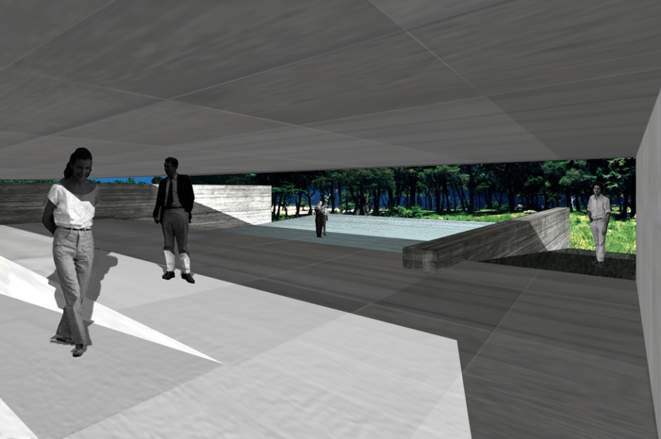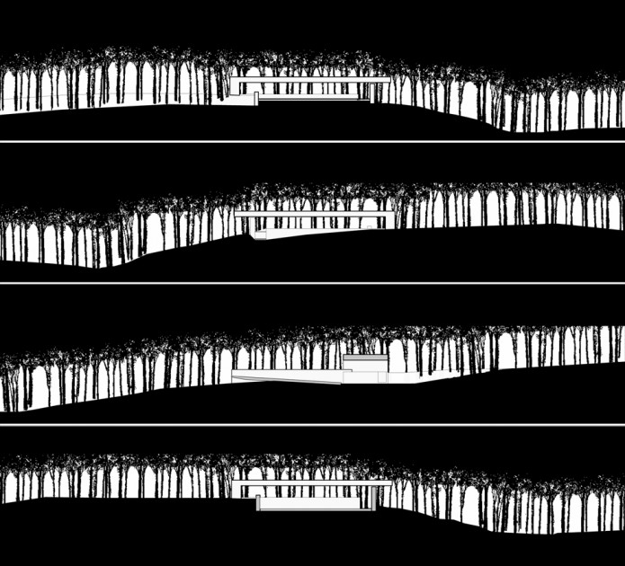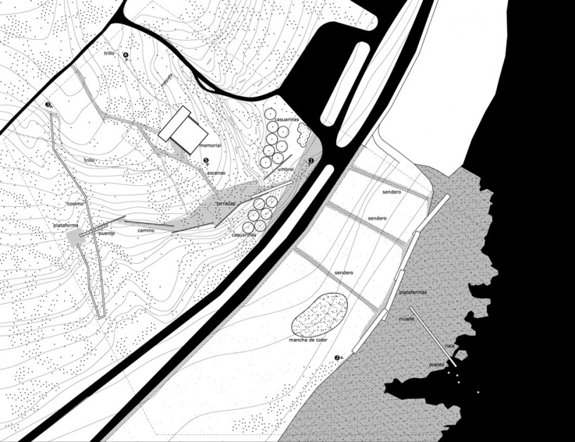 Intervención en la memoria / desaparición / no estar / el vacío, el pensamiento / la memoria / lo abstracto / lo intangible / lo mental, la arquitectura se vuelve abstracta / el paisaje se vuelve abstracto, hay mucho para decir / hay mucho en el aire, hay poco en la tierra / Construir con palabras / que es más difícil que construir espacios, construir en el bosque / en el mar / en el silencio, encontrar las palabras / representarlas / incursionar por el mundo conceptual / recorrer las memorias / sentir y hacer sentir / texturas / superficies / recorridos / estar abajo / estar arriba / mirar a través / horizonte / geometría.