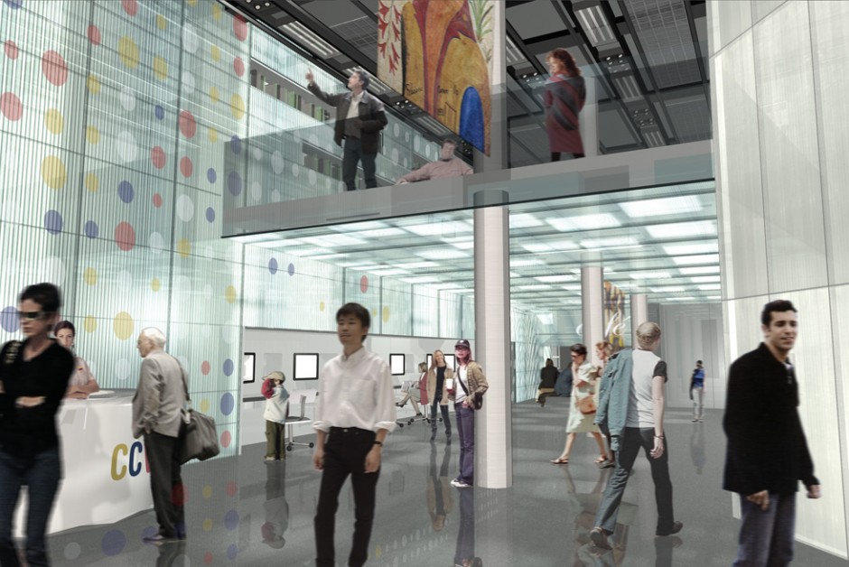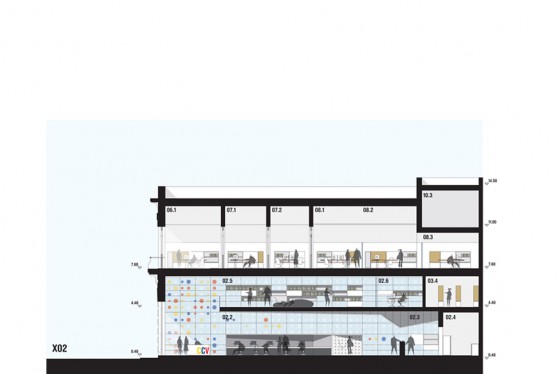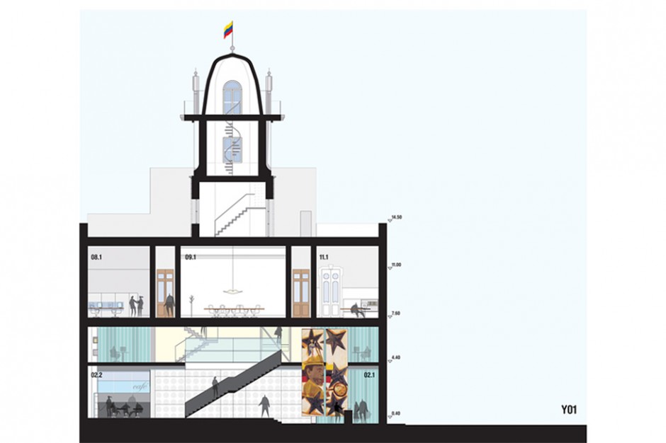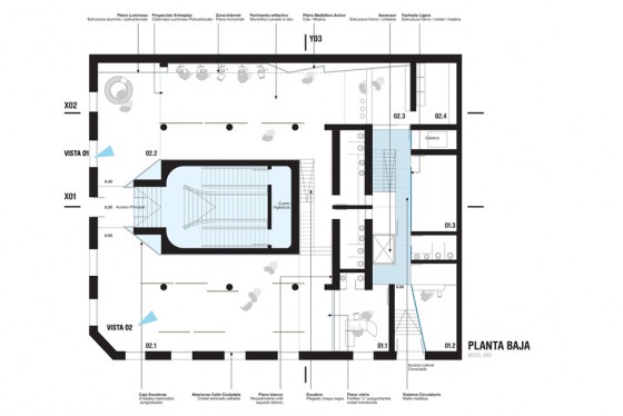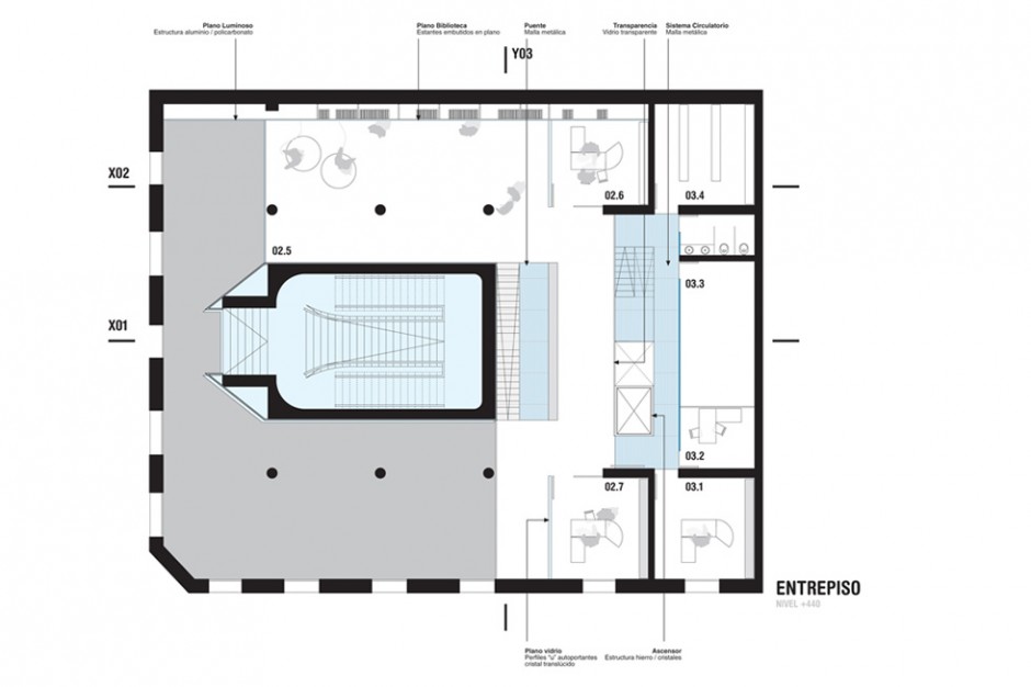 La masividad del edificio se desmaterializa, re-inventando un espacio de alturas libres, generoso, permeable; donde la luz natural y artificial están presentes, generando un ámbito que invita a recorrerlo, a practicarlo, a vivirlo.