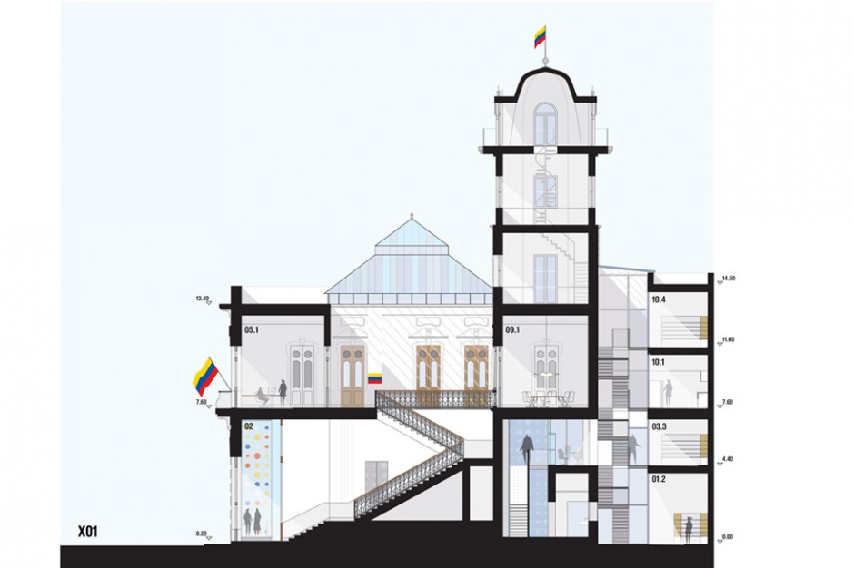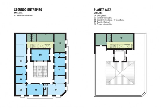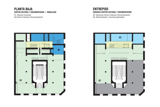 El proyecto surge de resolver las dos entidades que conviven en este proyecto, la Embajada y Consulado por otro, el Centro Cultural y de Documentación por otro.