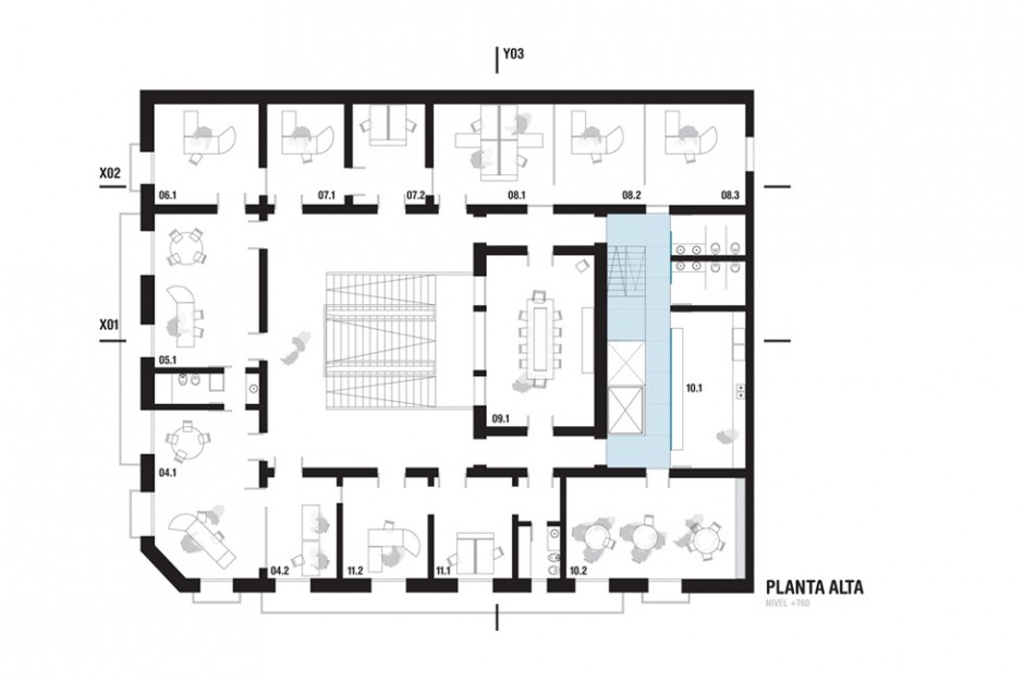 Se deja intacto el edificio patrimonial, priotegiendo su arquitectura, dejando el edificio tal cual es. Se adaptan las necesidades programáticas a la estructura edilicia preexistente, resolviendo las nuevas interconecciones e interrelaciones.