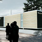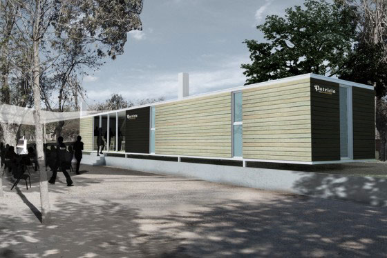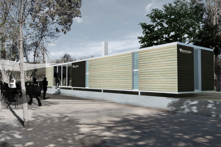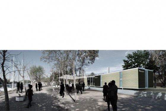 Pabellón ligero que se posa en el paisaje, intentando incorporarse al entorno de forma serena. El pabellón se alinea con el borde del río, observando el espectáculo del atracadero, siendo parte del arbolado existente, apoyándose suavemente.