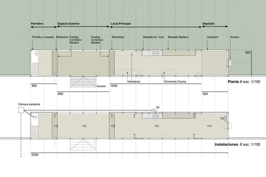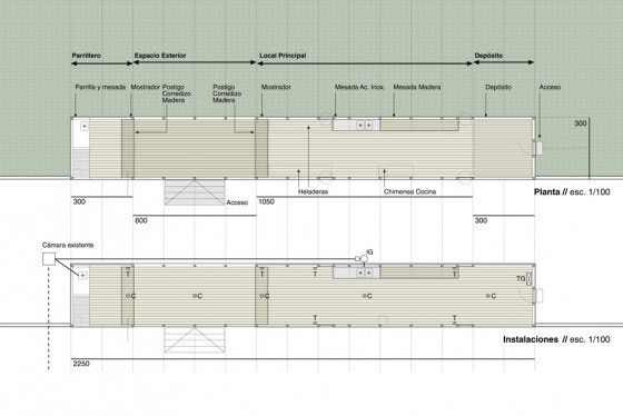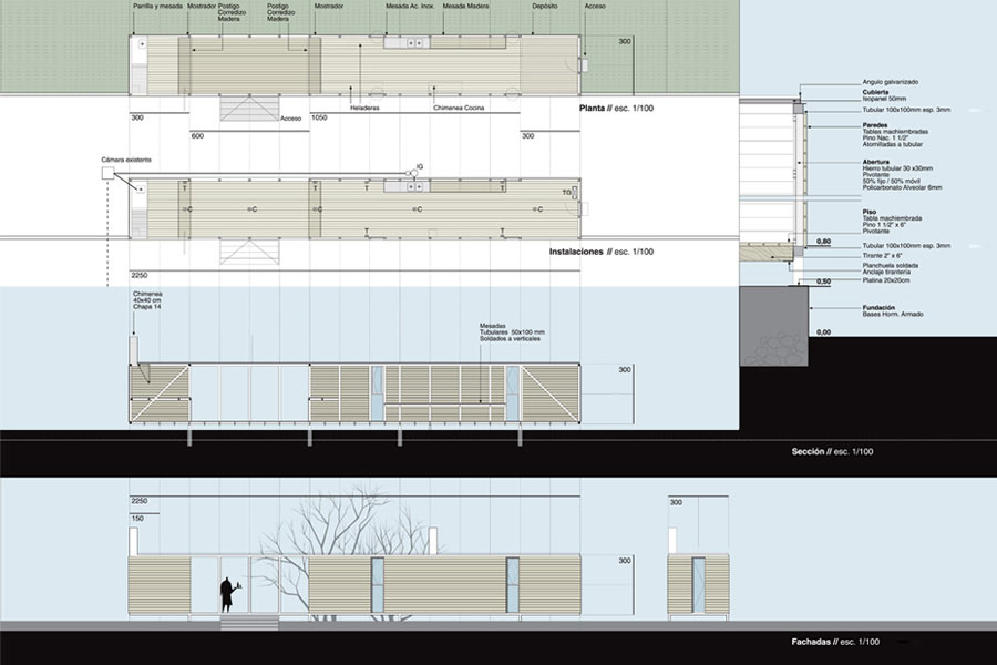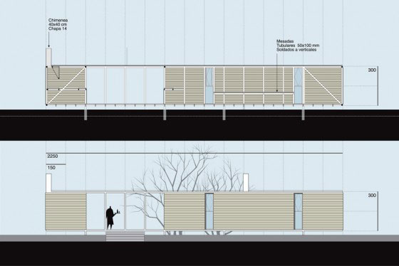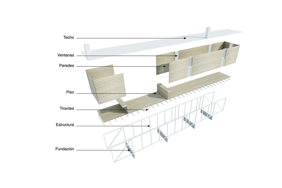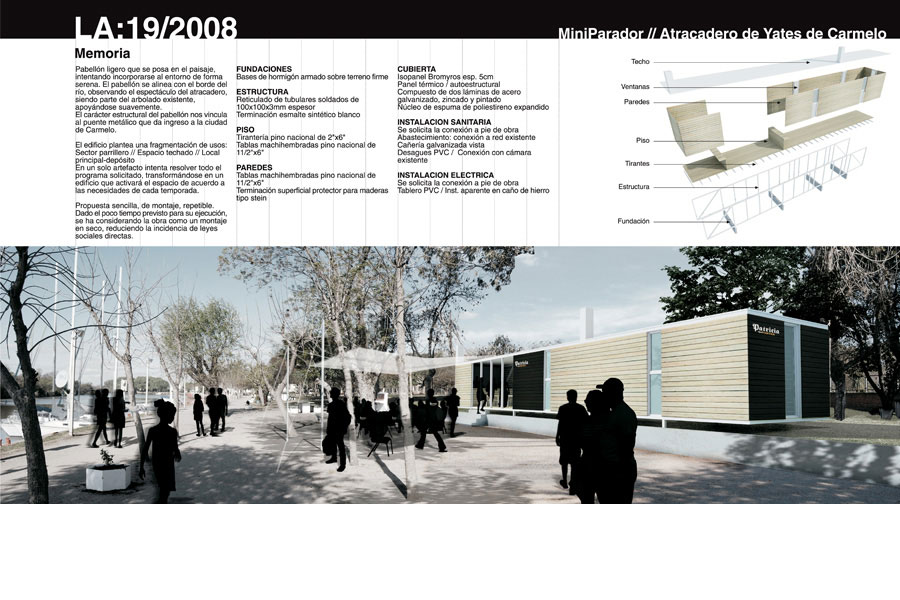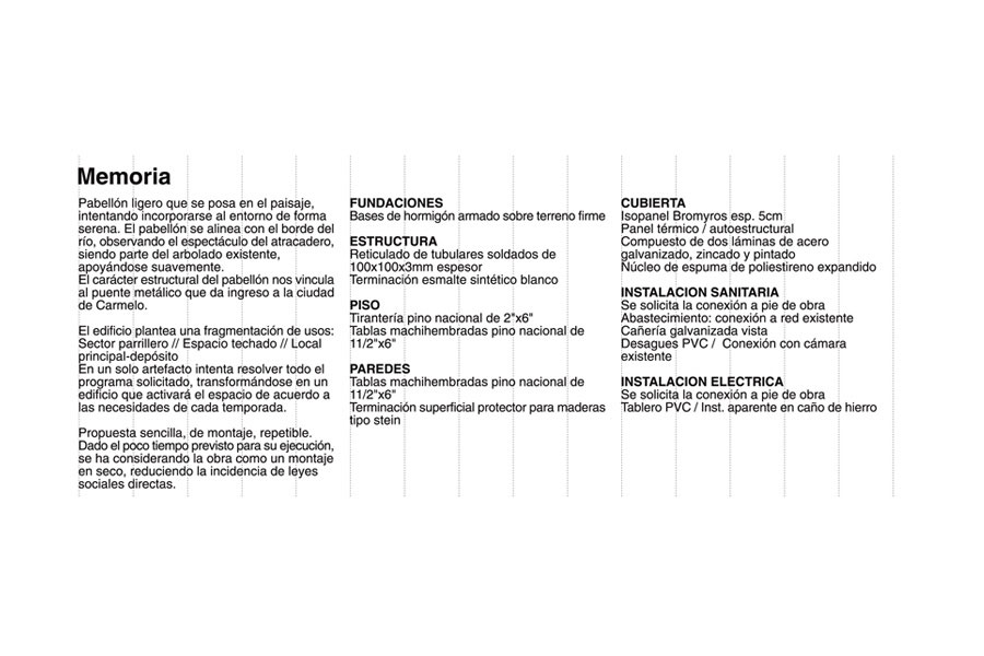 El carácter estructural del pabellón nos vincula al puente metálico que da ingreso a la ciudad de Carmelo.
